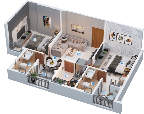 - • Well-planned 2 BHK and 3 BHK apartments with efficient space utilization